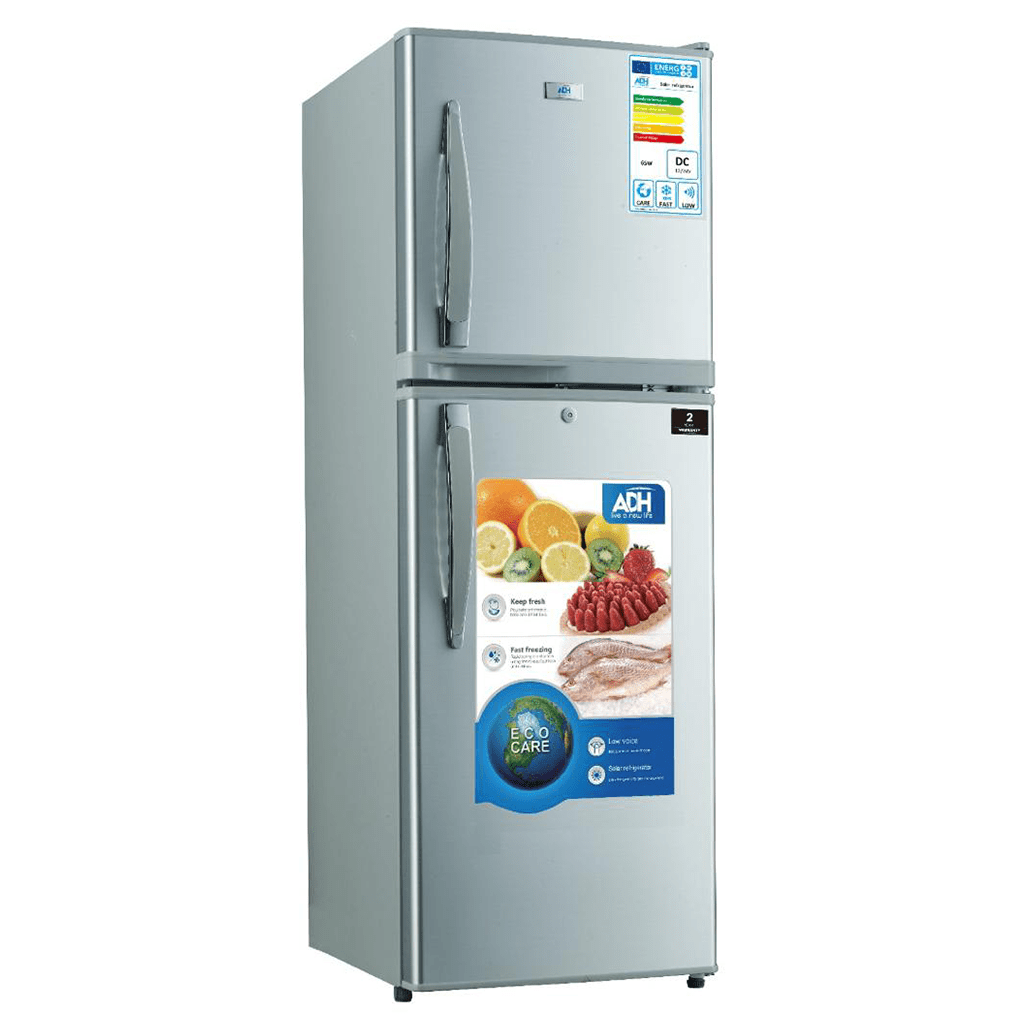 ADH 168L DC Solar Refrigerator, 168 Litres Storage Capacity With Double Door Design, 12V/24V Solar DC Operation, High Efficiency Compressor With Fast Freezing Function, Adjustable Glass Shelving, Low Power Consumption System, Easy Clean Interior, Off-Grid Energy Efficient Refrigeration Design Brand new