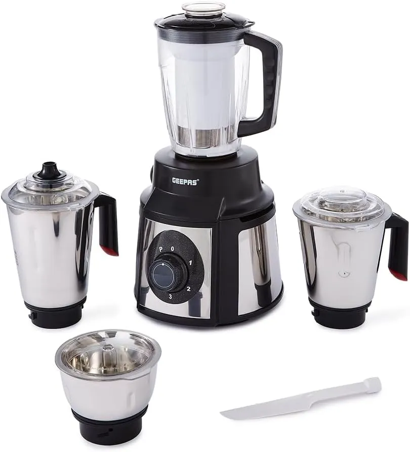 GEEPAS 5-IN-1 MIXER GRINDER- GSB5457N, 1000 W POWERFUL COPPER MOTOR AND STAINLESS STEEL JARS, MODERN DESIGN, DURABLE BODY, ROBUST HANDLES AND SHARP BLADES Brand new