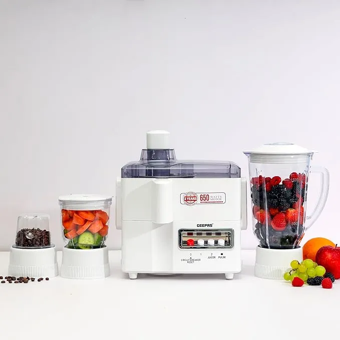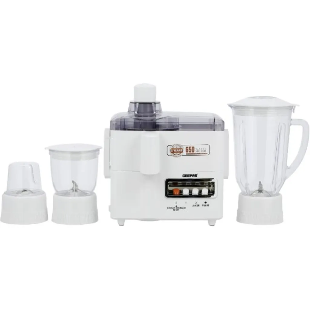 GEEPAS 650W 4-IN-1 FOOD PROCESSOR- GSB6147, TRANSPARENT PLASTIC JAR WITH STAINLESS STEEL BLADES FOR BLENDING, MINCING AND MILLING FUNCTION, OVERHEAT AND OVERLOAD PROTECTION Brand new