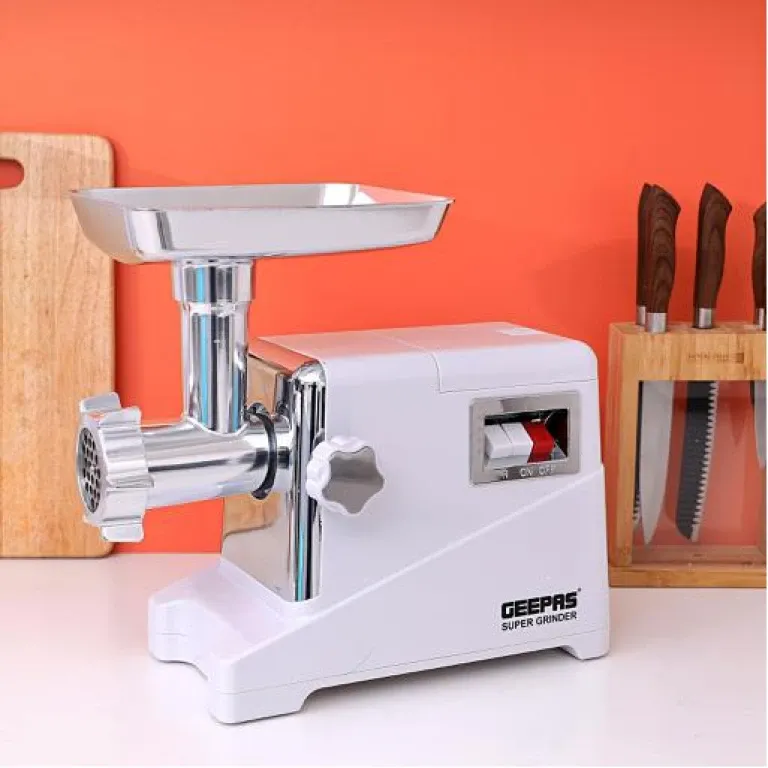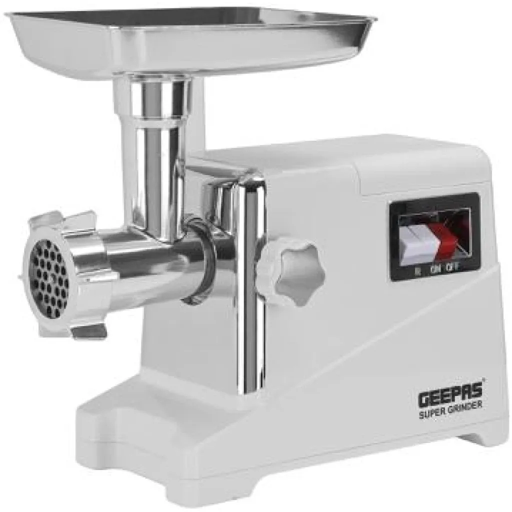GEEPAS MEAT GRINDER, GMG1911, 1600W, 2KG/MIN, REVERSE FUNCTION – 3 METAL STAINLESS STEEL CUTTING PLATES, ACCESSORIES, METAL GEARS, STAINLESS STEEL BLADE | MobileShop Uganda