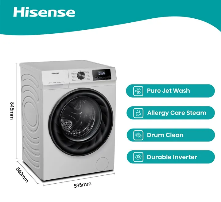 HISENSE 7KG FRONT LOADER WASHING MACHINE WITH INVERTER | MobileShop Uganda