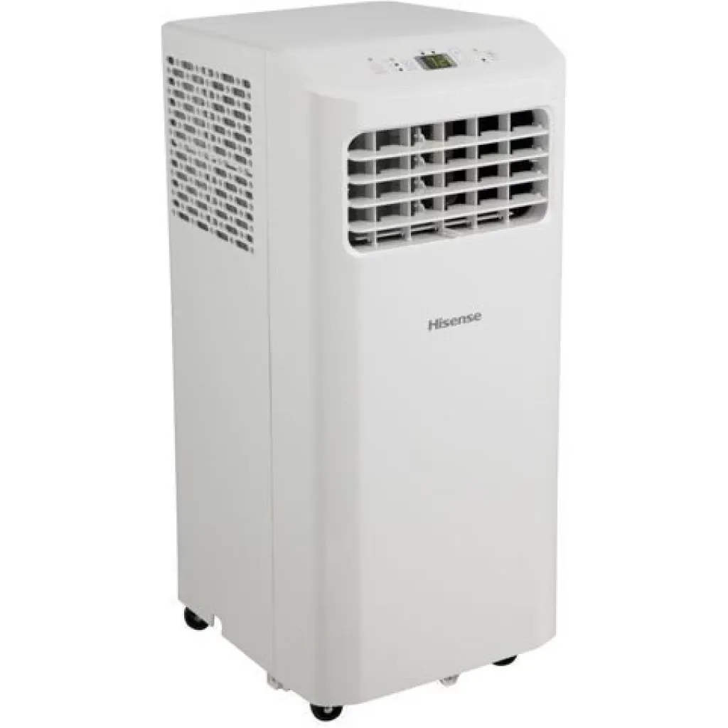 Hisense 9000 BTU Portable Air Conditioner, Compact Cooling Solution For Small Rooms, Energy Efficient Cooling Performance, Built-In Dehumidifier Function, LED Digital Control Panel With Remote, Easy Mobility With Castor Wheels, Modern Portable Air Conditioner Design | MobileShop Uganda