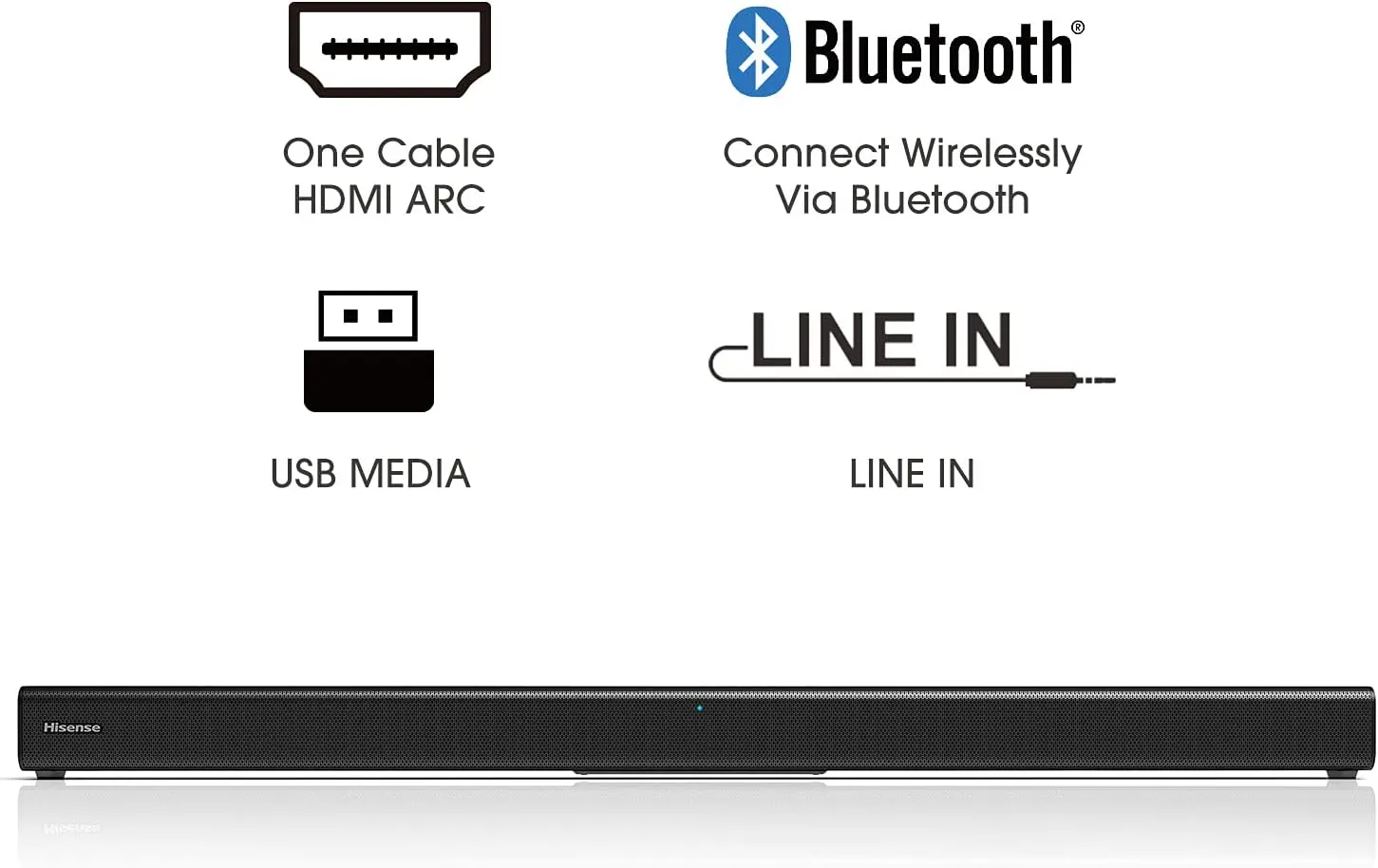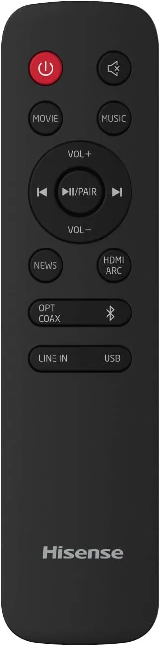 Hisense HS205 2.0 Channel Soundbar, 60W Stereo Sound Output With Dual Full-Range Speakers, Dolby Digital Audio Enhancement, Bluetooth Wireless Music Streaming, HDMI ARC Optical AUX And USB Connectivity, Compact Wall-Mountable Home Theater Soundbar Design Brand new