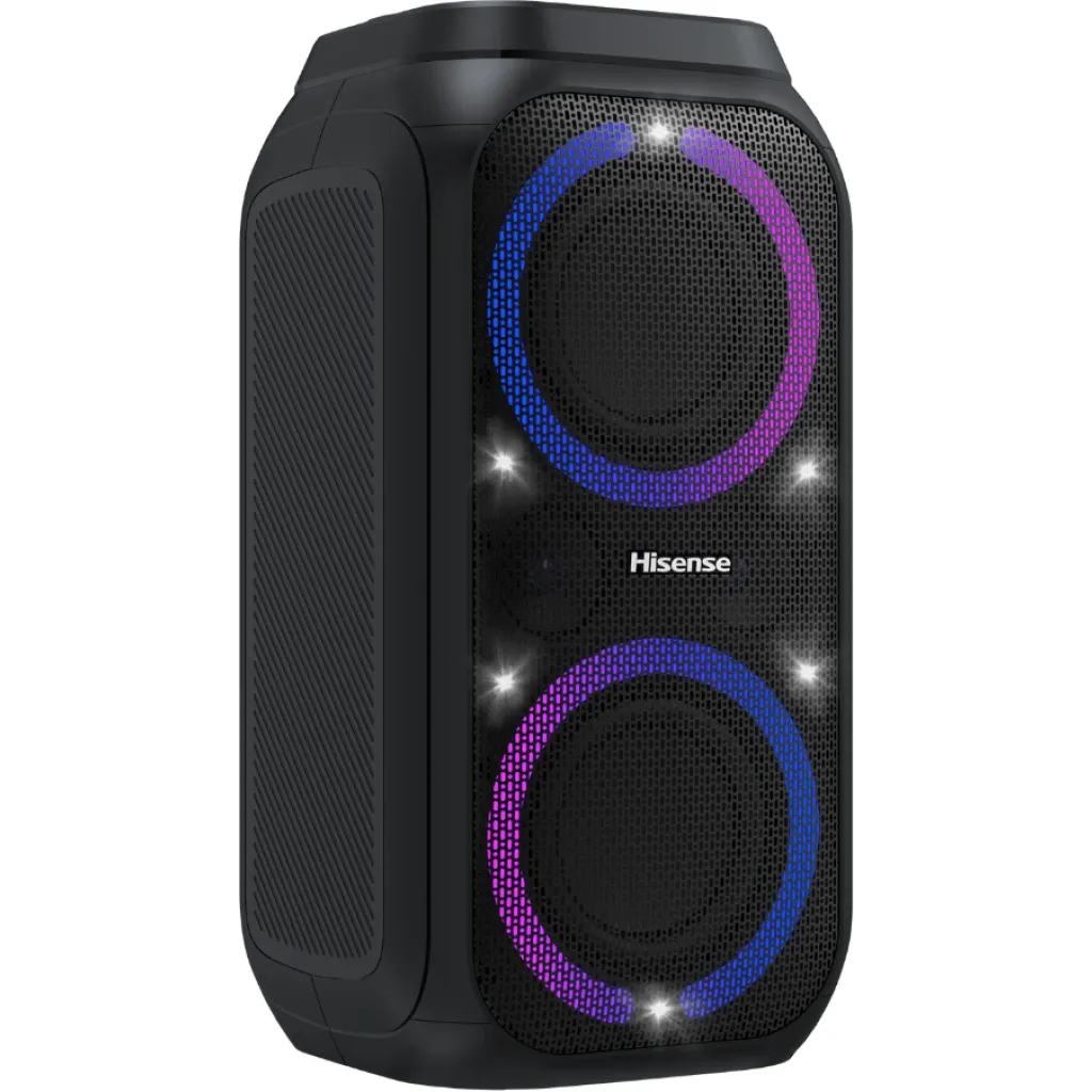 Hisense Party Rocker 160 Portable Bluetooth Party Speaker, 160W Powerful Stereo Sound Performance, Dual Subwoofers And Tweeters Speaker System, Bluetooth Wireless Streaming, 12 Hour Rechargeable Battery, IPX4 Splashproof Protection, LED DJ Party Lights With Karaoke Mode Design Brand new
