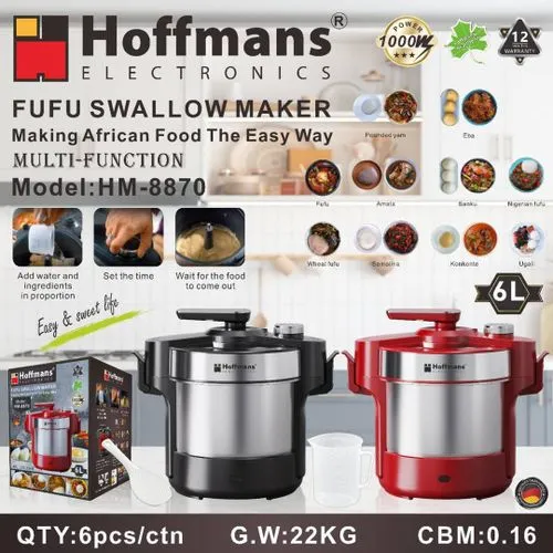 HOFFMANS 6L AUTOMATIC POSHO MAKER, UGALI MAKER, FUFU AND SWALLOW MAKER 1000W HM-8870 | MobileShop Uganda