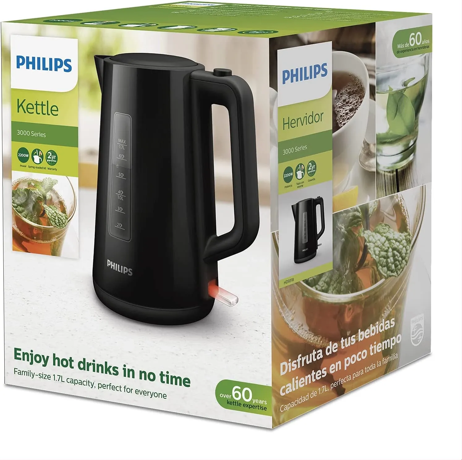 PHILIPS 1.7 LITRES PLASTIC ELECTRIC KETTLE, 3000 SERIES, AUTOMATED LID, 1850W | MobileShop Uganda