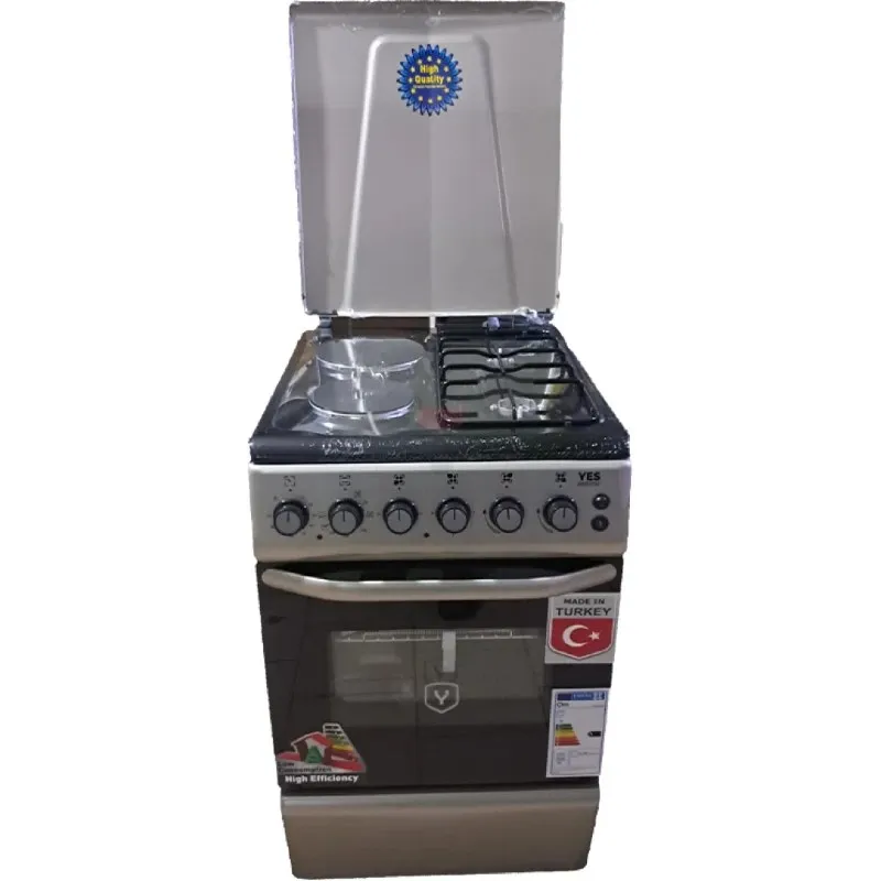 Yes 50×60 2+2 Cooker YS-5622, 2 Gas Burners With 2 Electric Hotplates, Electric Oven With Grill And Oven Lamp, 50×60cm Cooking Capacity, Auto Ignition, Timer Control, Stainless Steel Top Cover, Free-Standing Kitchen Cooker Design. Brand new